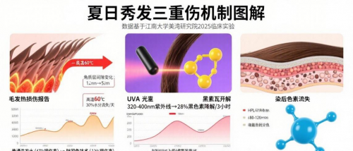 1. **毛鳞片失守**:高温使头发最外层的毛鳞片受热张开,如同打开城门的堡垒,导致水分和角蛋白以每天30%的速度流失。用普通洗发水清洗时,毛鳞片损伤率可增加47%,直接引发干枯、分叉和断裂。