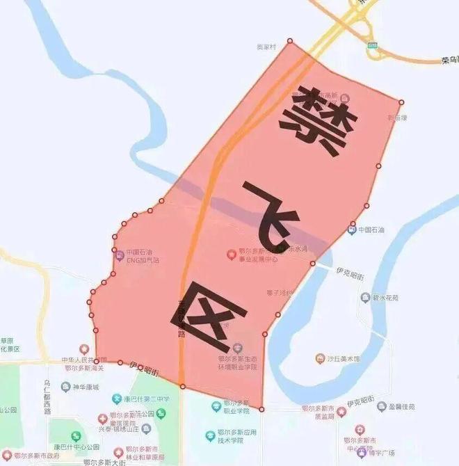 管控区域:以康巴什区(北至高新园区、西至呼和浩特路、南至伊克昭街、东至萨茹拉路)的合围区域,线米(含)以下空域。